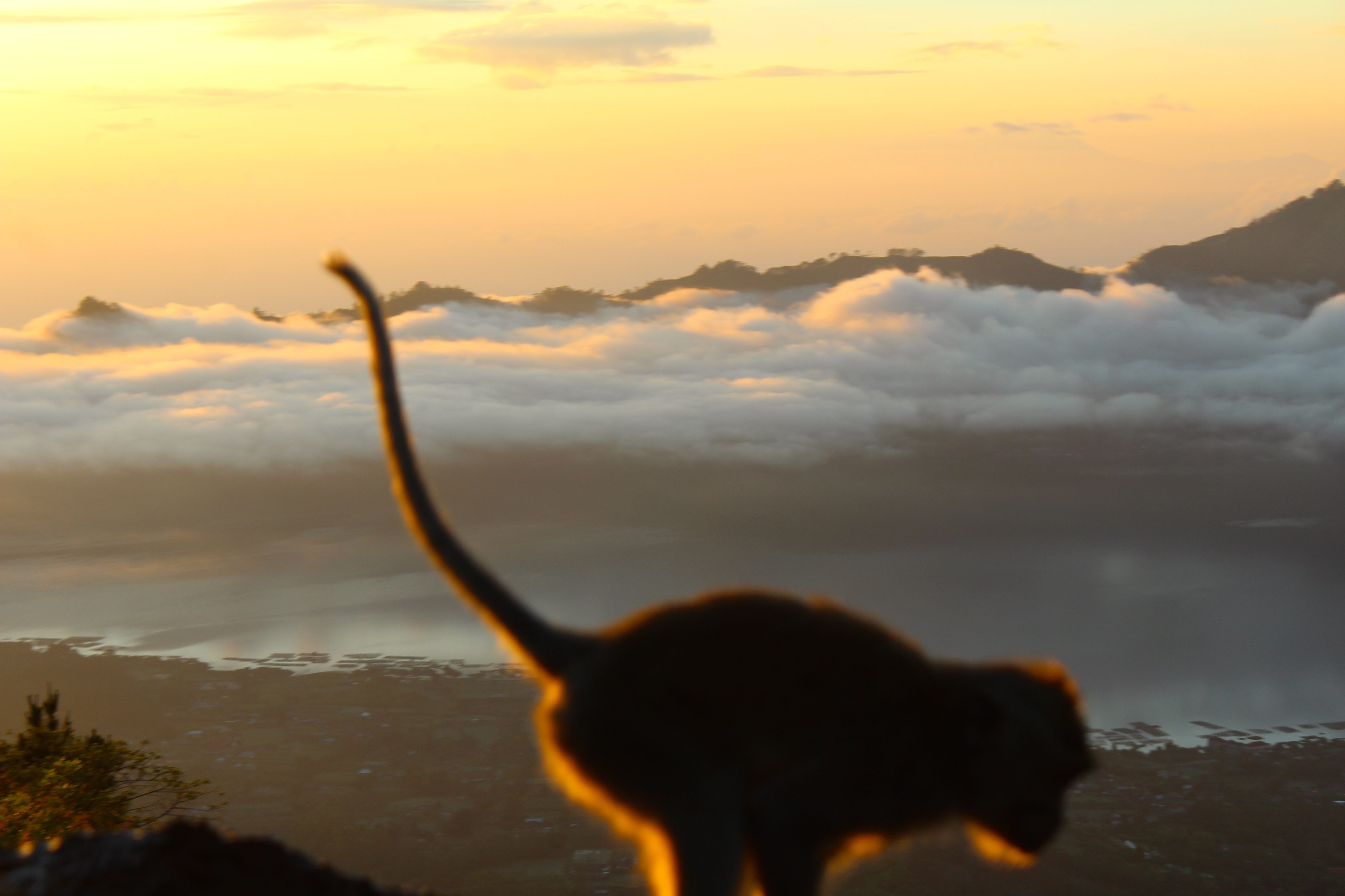 We reached the top by 5:30am just in time for the sunrise and it was stunning. Luckily, we had a crystal clear morning so the sunrise was spectacular. Make sure you bring warm clothes, as it is very chilly on top of the mountain! I wore leggings, a cardigan, windbreaker, and scarf, and I was okay. Also beware of the monkeys! They come out at sunrise and will try to steal your things. I watched them take a jacket that had been left on the ground, a water bottle, and a full bag of chips. I even saw one steal a coffee mug and take a sip like a human!